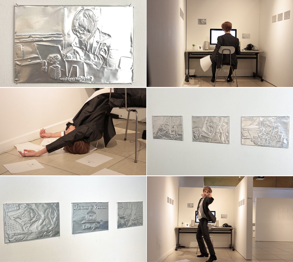 Als Teil der Installation zeigt eine Reihe von Aluminiumgravuren Videostills und gesammelte Bilder aus dem Forschungsprozess und verwandelt flüchtige digitale Momente in greifbare Tafeln. Die billige, industrielle Qualität des Materials kontrastiert mit seiner Anmutung historischer Artefakte.